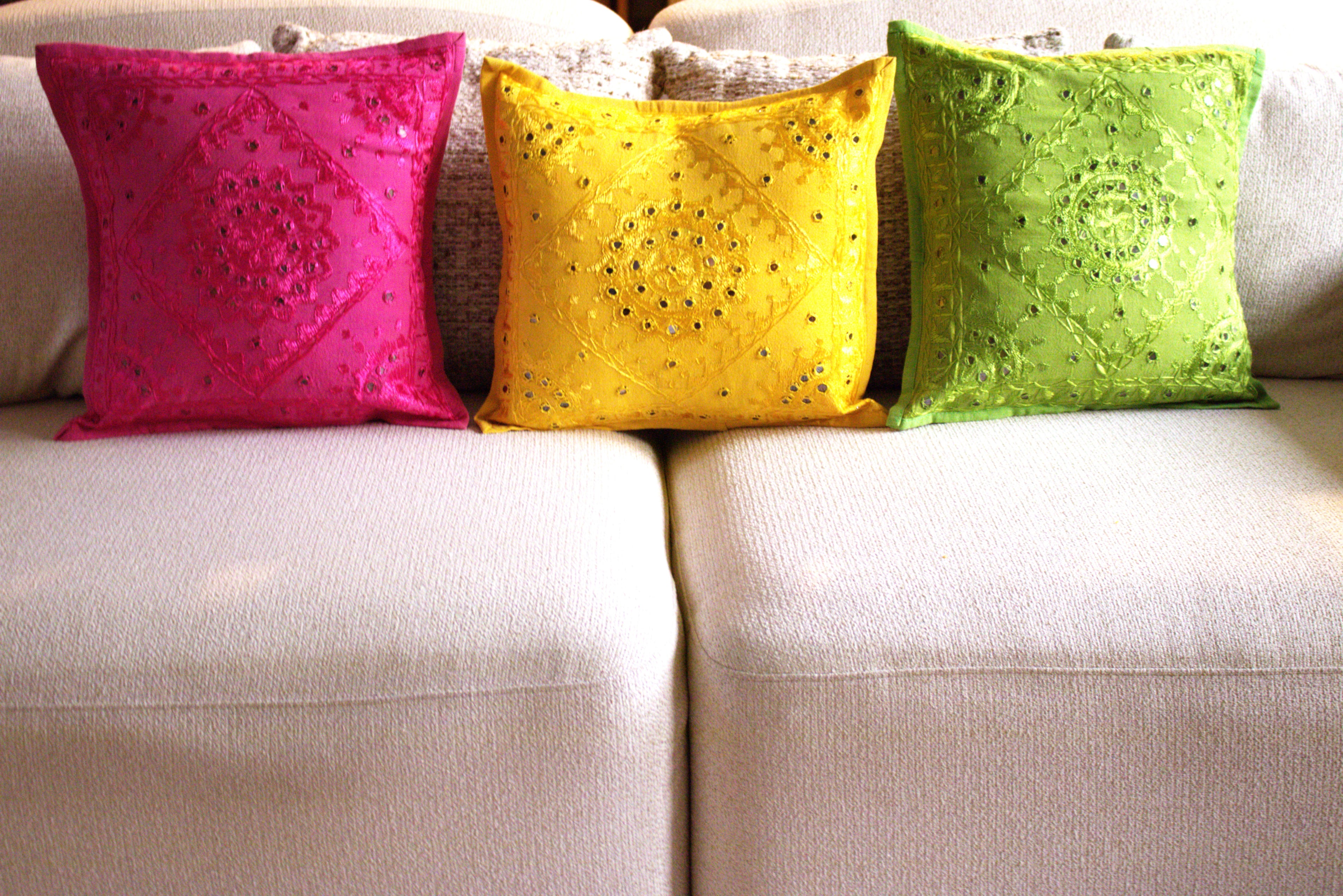 Mixing textures is the easiest way to add depth and warmth to your home. Start with soft base fabrics like cotton or linen, then layer accent cushion covers with embroidered details, raised patterns, or artistic touches. Finish the look with a few handmade, one-of-a-kind décor pieces — a textured vase, a painted bowl, or a mixed-media accent — to bring true character and personality into your space.